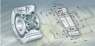 單列角接觸球軸承中,滾道的設(shè)計(jì)形式使作用力與徑向平面傾斜,并以特定的接觸角度從一個滾道傳遞至另一個滾道。軸向承載能力隨接觸角的增大而增大。由于單列角接觸球軸承具有較大的接觸角,因此,同深溝球軸承相比,更適于承受較大的單向軸向力。單列角接觸球軸承能夠承受徑向載荷和單向的軸向力。它們可以通過另一個反向安裝的軸承進(jìn)行調(diào)節(jié)。 雙列角接觸球軸承的設(shè)計(jì)類似于一對O 型布置的單列角接觸球軸承。在這種情況下,軸承壓力線的頂角指向外部。雙列軸承能夠承受較大的徑向力及雙向的軸向力并且特別適用于實(shí)現(xiàn)軸向剛性引導(dǎo)的軸承布置。根據(jù)不同系列,軸承可以設(shè)計(jì)帶有或不帶裝球缺口。